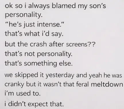 It’s a calm, grounded explanation of why screens feel regulating in the moment, how they quietly dysregulate the brain over time, and what to do instead without power struggles, shame, or chaos.
